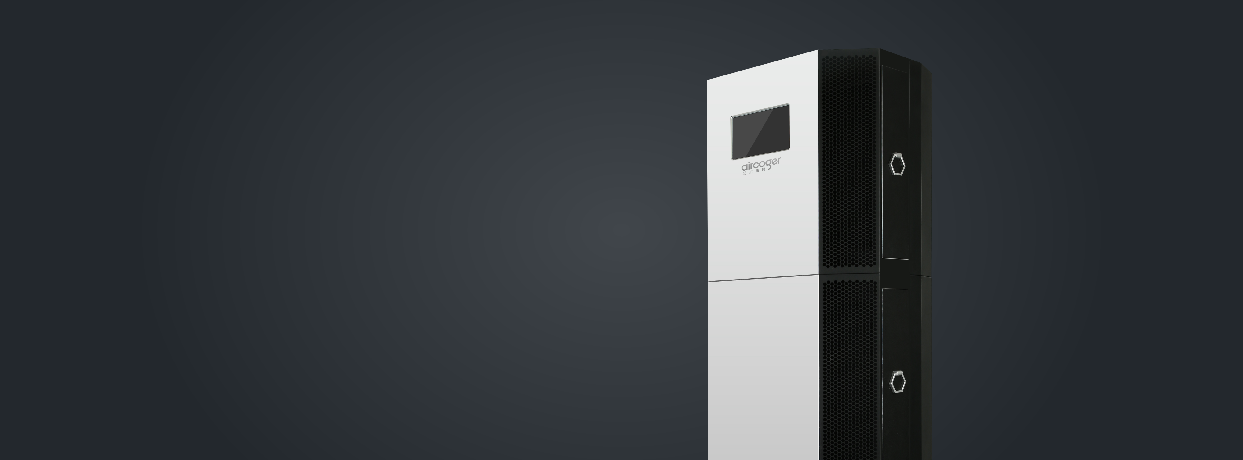 产品采用模块化拼装,每个模块都有独立风机、滤网、一台装有总控电路模块主机; 主机模块上设有显示界面及触摸屏操控按键; 每个模块在智能模式下可独立开关。