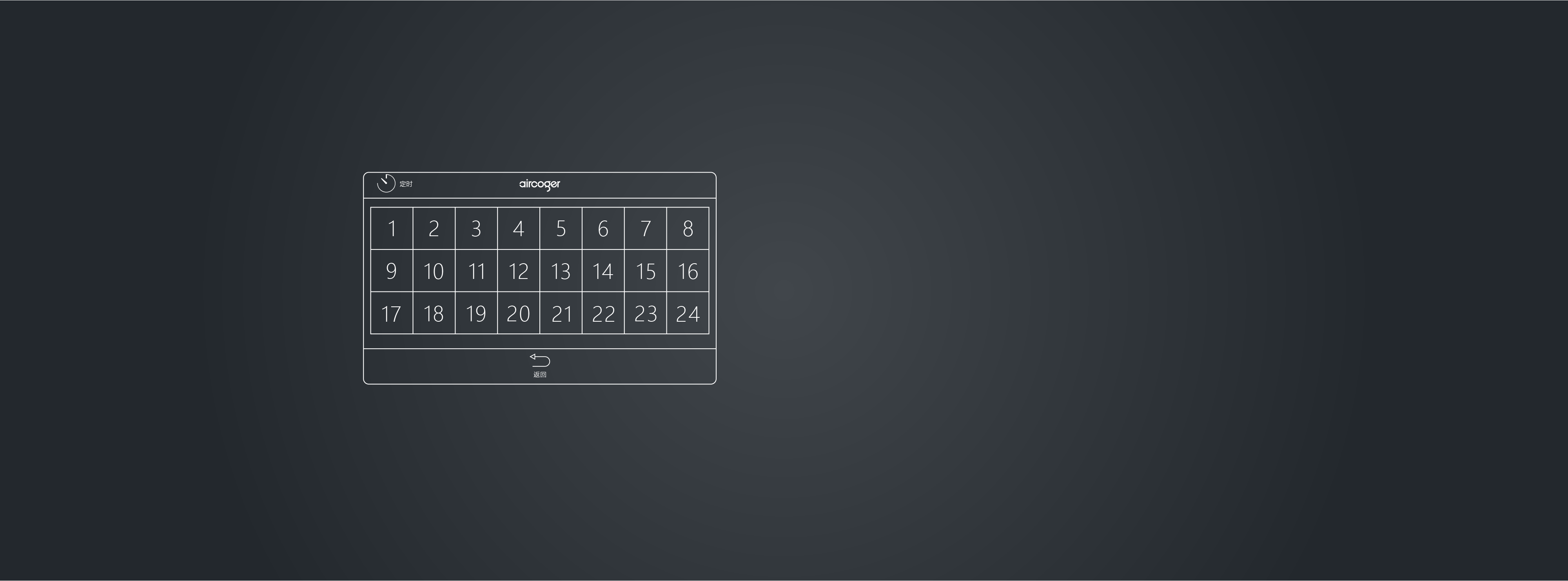 轻触机器主界面中的定时按键,机器进入定时子界面中,选择所需设定的时间(1-24h)然后按返回键,退到主界面中。