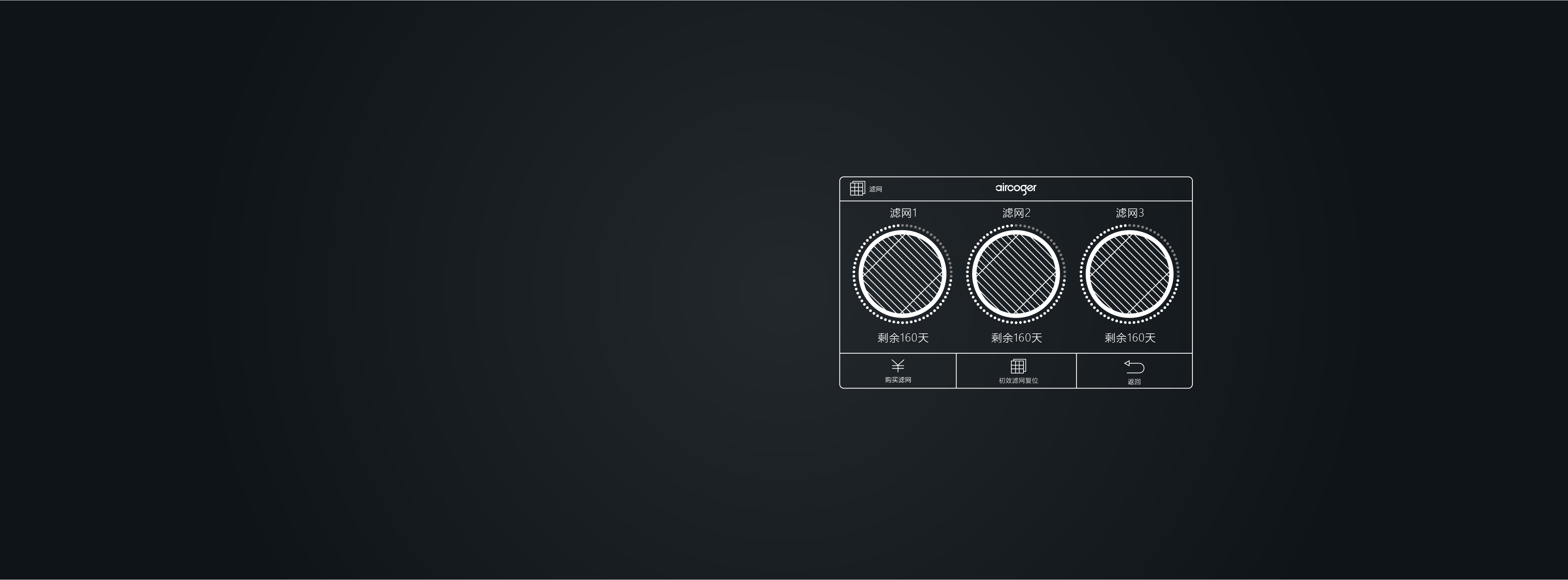 产品滤网更换提醒功能,每个模块滤网使用寿命独立监测更换;